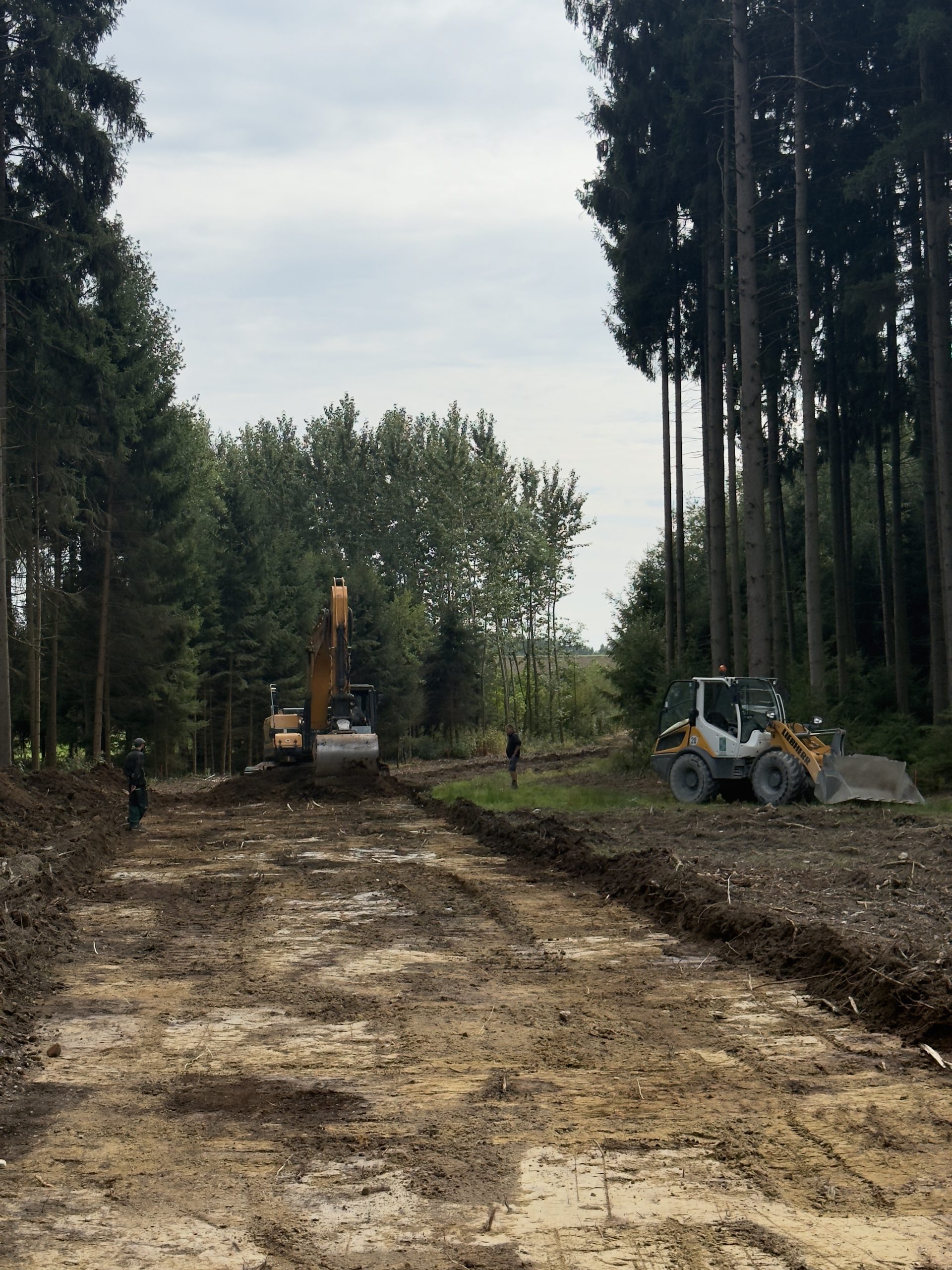 Parallel dazu wurden bestehende Wege mit einer zusätzlichen Schottertragschicht ertüchtigt und eine neue Zuwegung zu den Standorten angelegt. Bei der Auswahl der Baustoffe haben wir uns trotz erheblicher Mehrkosten bewusst für natürliche Baumaterialen entschieden. Mit diesem ganzheitlichen Ansatz gewährleisten wir eine spätere Wiederverwertung, die andernfalls durch günstigeres Material wie z.B. Betonbruch nicht gesichert scheint.