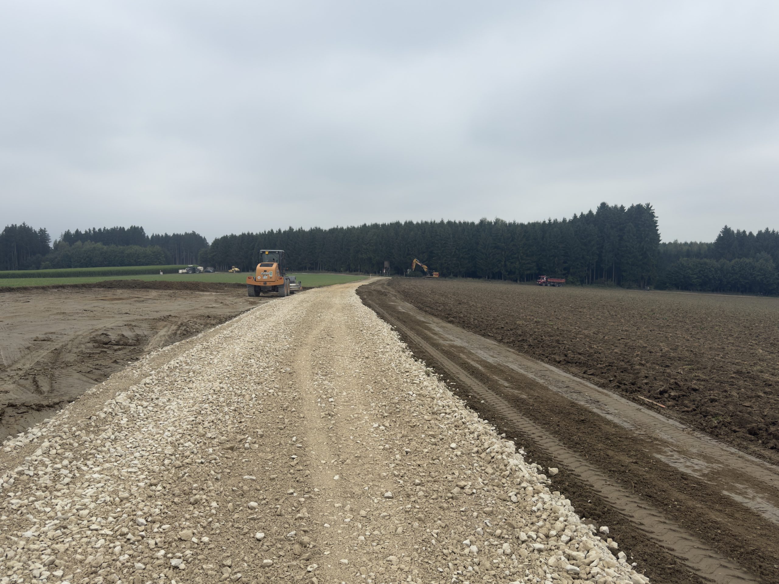 Anlegen von Wegen, Kran- und Montageflächen am Windpark Haimhausen.